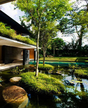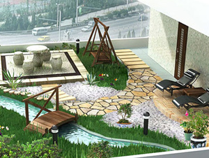 這個別墅花園融合了日式的風(fēng)格,將石頭和綠植相結(jié)合,展現(xiàn)出自然清新之感。在一旁開辟一個小池,閑暇之余,可以在這之中養(yǎng)些小魚,悠然自得。