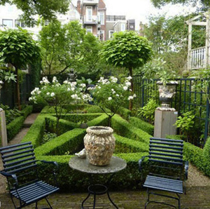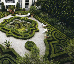 從上方俯瞰這個別墅花園,所呈現(xiàn)出的高超的園藝,四個角都由抽象的幾何圖案組合而成,中間則由幾何花形裝點,整個花園展現(xiàn)出大氣之風(fēng)。