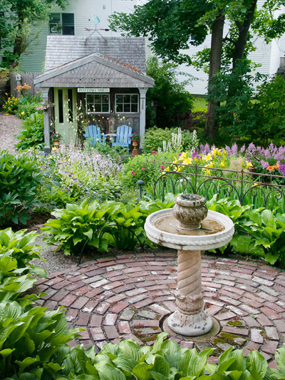用石頭鋪設(shè)地板,可以讓你的庭院緩和、不突兀地過渡到庭院周圍的石徑——但為什么不設(shè)計(jì)并建造一個(gè)具有一定高度的石凳,為客人提供座位?因?yàn)楸跔t附近的的矮墻已為客人坐供應(yīng)了一個(gè)即興的現(xiàn)場座位了。