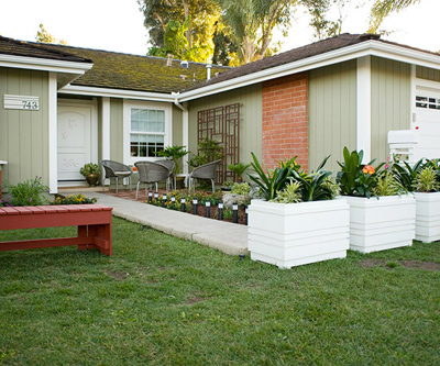 對于天井來說,前院是一個(gè)很特別的地方,但為什么不好好利用這些優(yōu)勢呢?用一些設(shè)計(jì)技巧,可以為你和你的鄰居創(chuàng)造一個(gè)具有小小空間的私人地方。使用中等高度的集裝箱來建立邊界,甚至一個(gè)種植草坪的叢地。