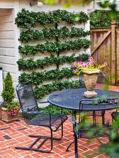 直立的天井并不是嶄新的,但生動(dòng)的墻壁卻獲得了新的流行元素。如果不想在你花園筑起一道墻,你可以種植一些樹來軟化庭院的邊境。