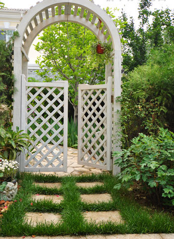 拱形別墅花園門(mén)可以為攀爬的植物提供載體,白色的拱門(mén)上可以是浪漫的紫藤、嬌艷的月季、熱烈的凌霄、多姿的鐵線蓮。無(wú)論是哪種植物都會(huì)讓你的花園更具立體感。